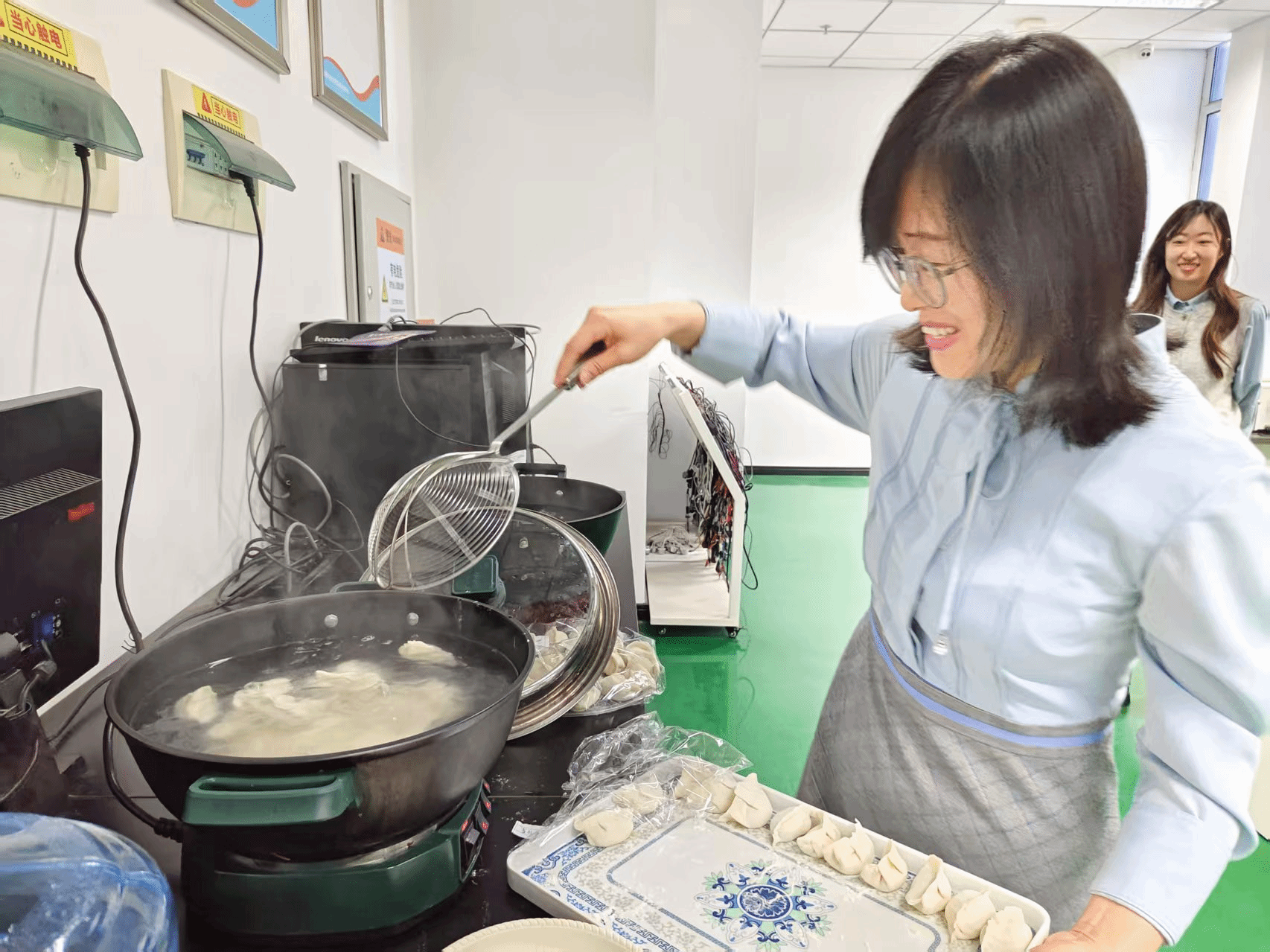 迎新活动除了设置打保龄球、棋牌等趣味项目以外,还为老师安排了包饺子环节,大家围在一起,动作娴熟,笑语不断,场面温馨融洽。