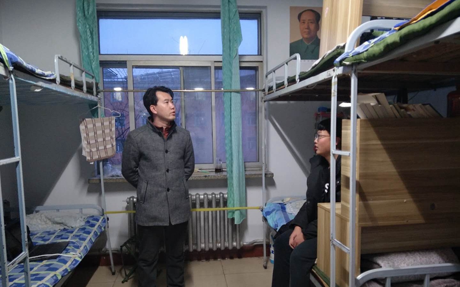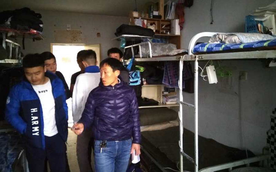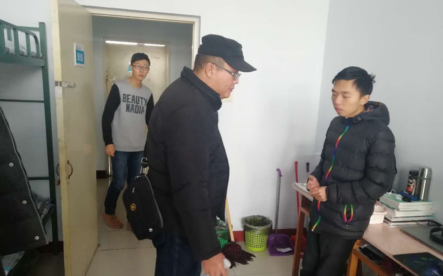 本网讯 为加强学生宿舍安全管理,进一步增强学生防火防盗等安全意识,将危险消灭于萌芽之中。2017年12月29日,我院各级班主任、学工办老师对赛罕、盛乐两校区的学生宿舍进行走访检查。在检查过程中,老师叮嘱同学们要加强安全意识,切勿在宿舍内使用大功率电器,以免发生火灾等安全隐患。学生宿舍安全关系重大,学院领导、老师高度重视学生安全问题,本次走访检查宿舍也是为构建安全卫生宿舍,保护学生切身利益奠定坚实的基础。