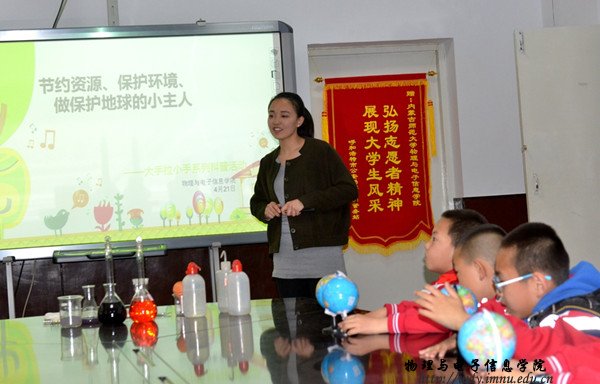 本网讯(文/图 边辑)在第48个世界地球日来临之际,为提高学校师生的环境意识,特别是能够让青少年儿童了解世界地球日的有关知识,并懂得保护地球的重要性,让保护环境成为幼儿的一种自觉行动,由呼和浩特科学技术协会、内蒙古科学技术普及学会主办,9728太阳集团承办的大手拉小手“地球日”科普活动在师大举行。
