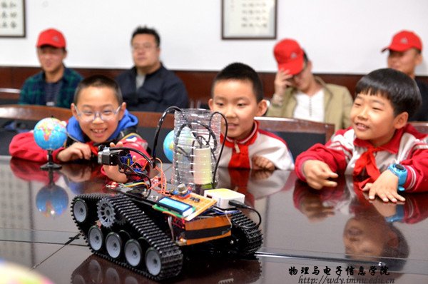活动最后,孩子们还现场观摩了太阳成集团tyc9728大学生直通挑战杯的获奖作品——灭火机器人的灭火演示,进一步激发了孩子们对科技发明的兴趣。