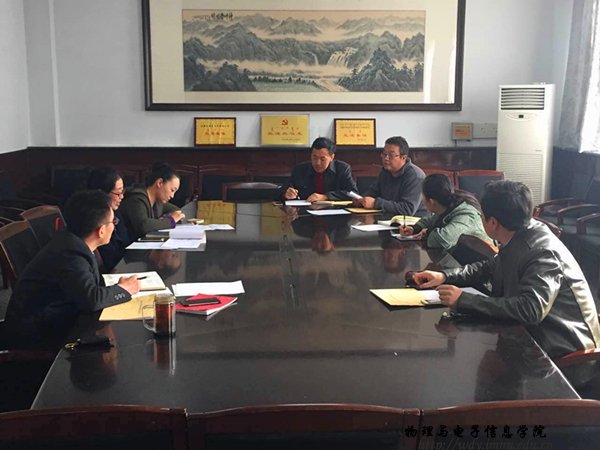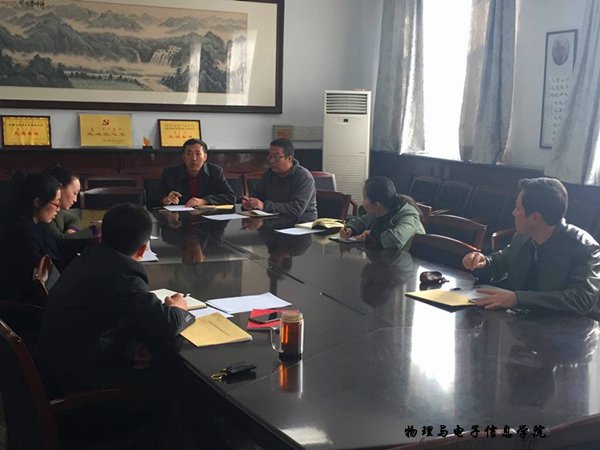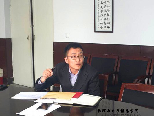 本网讯 为了引导2017年应届毕业生树立正确就业观,提高自身就业竞争力。2017年3月16日下午,9728太阳集团党总支副书记何小龙老师在物电楼会议室主持召开了毕业生就业研讨会,我院团总支书记萨其尔老师、学工办塔林托亚老师、苏雅拉老师以及各毕业班班主任出席了此次会议。