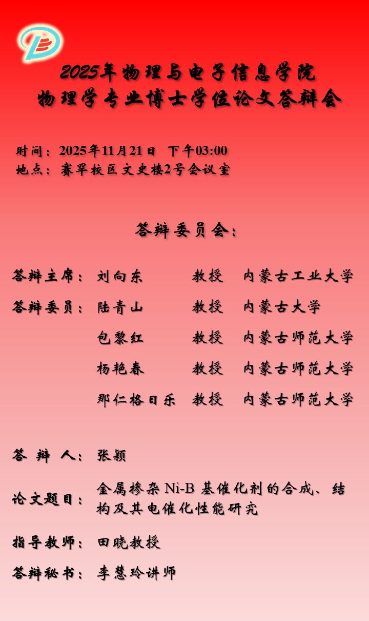 2025年9728太阳集团 物理学专业博士学位论文答辩会