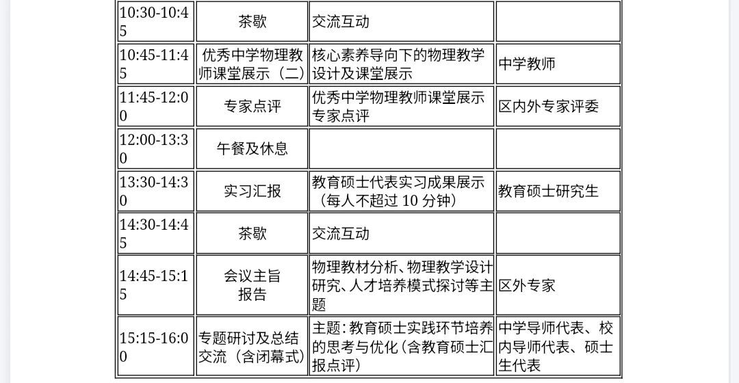 校内人员:教育硕士导师、实践导师;学科教学(物理)全体教育硕士;物理学科教学论教师及相关专业研究生。