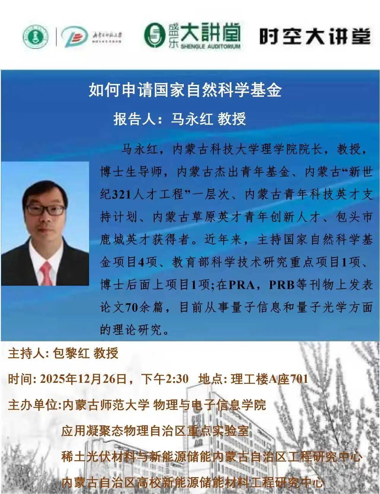 【预告|时空大讲堂】如何申请国家自然科学基金